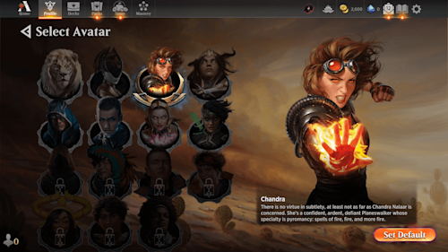 Play as your favorite  Magic  character with Planeswalker avatars! Start with 12 options and gain additional avatars through events and through the in-game store.